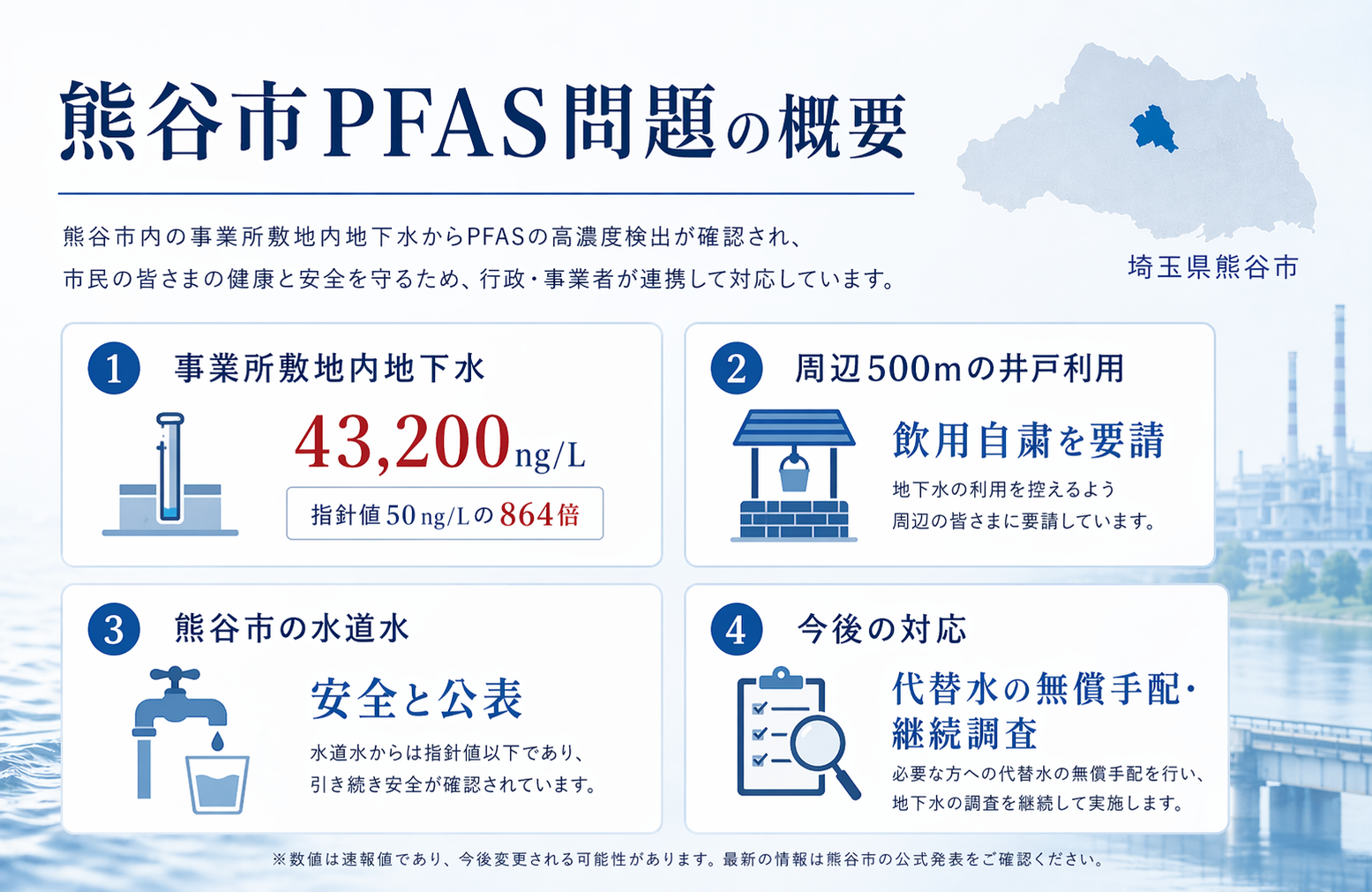 まずは、今回の熊谷市PFAS問題の全体像を整理します。