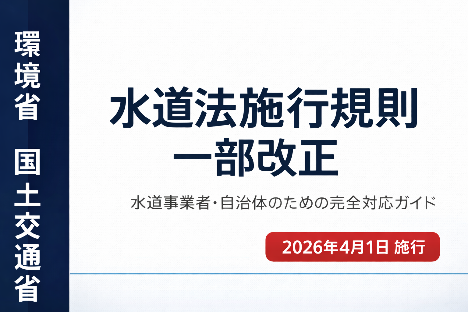 令和8年3月27日、環境省より「水道法施行規則の一部を改正する省令」(令和8年環境省令第7号)が公布され、令和8年4月1日より施行されました。国土交通省からも同日付けで水道事業者等へ施行通知が送付されています。