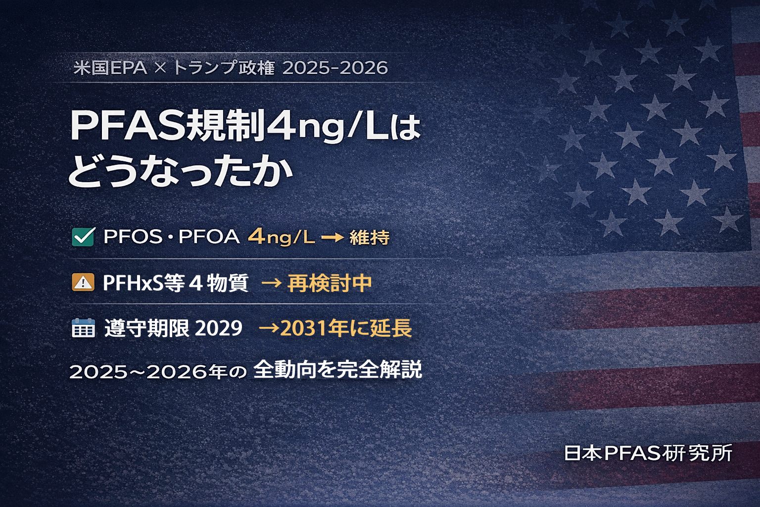 「PFOS・PFOAの4ng/Lは維持。ただし遵守期限を延長し、その他4物質の規制は再検討・撤回」