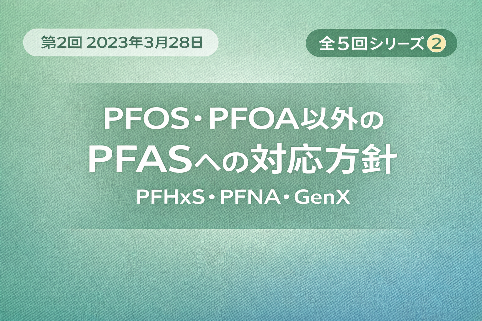 第1回で「PFASの全体像と議論の土台」を整理した流れを受け、第2回ではより踏み込んだ内容が議論されました。特に注目すべきは「PFOS・PFOA以外のPFAS」への対応方針の検討です。