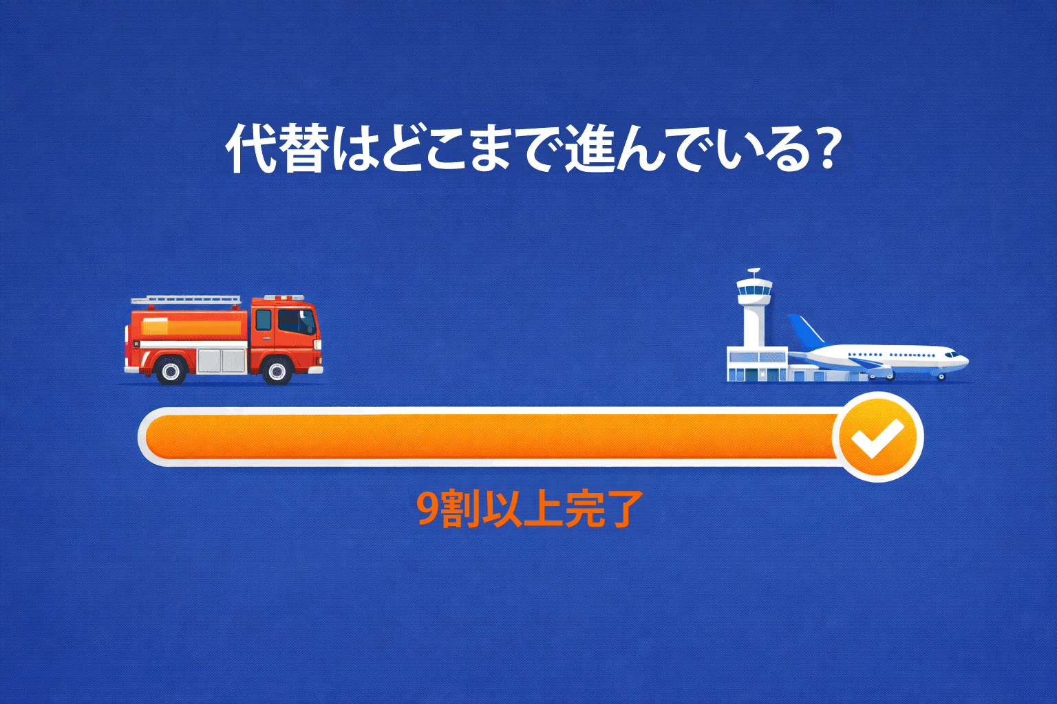 国が管理・運営する空港では2024年度中に交換を完了する予定。地方管理空港に対しても交換を働きかけています。会社管理の成田空港・中部国際空港・関西国際空港については、現在は規制対象の泡消火薬剤を保有していないことが把握されています。