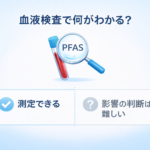 「血中濃度が下がっている」と言っても、環境省の調査では血液検査を受けたほぼすべての日本人からPFOS・PFOAが検出されています(2023年度:PFOS 0.39〜19 ng/mL)。