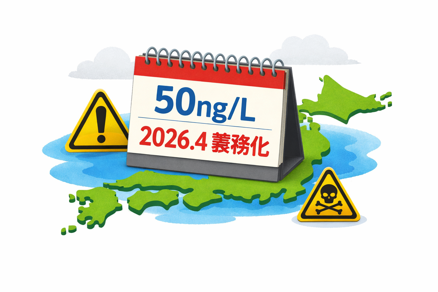 2026年4月、日本の水道におけるPFAS(PFOS・PFOA)対策は大きな転換点を迎えます。これまで「暫定目標値」だった50ng/Lという基準が、いよいよ法的義務を伴う基準へと格上げされる見通しです。