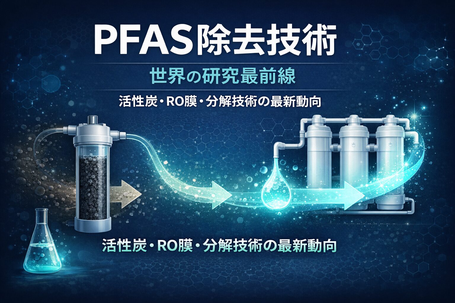 2026年4月1日から水質基準項目となったPFOS・PFOA。基準値(合計50ng/L)を超過した場合、水道事業者は濃度を継続的に低減するための浄水処理施設の整備が必要になります。