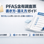 EU企業から届くSVHC(高懸念物質)調査票。PFASが規制対象物質として追加されたことで、製造業の担当者が対応に追われるケースが急増しています。